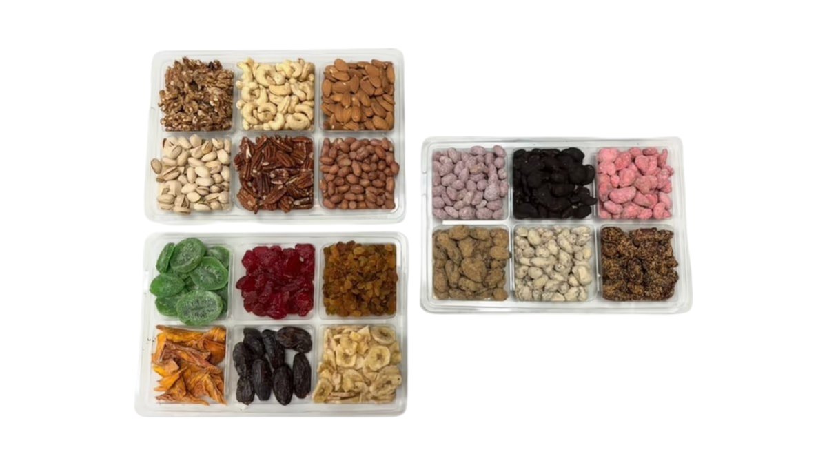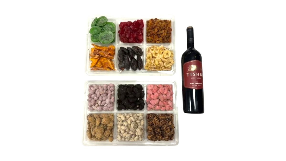 וטרינה 2 מגשים פירות יבשים ומקורמלים יין
