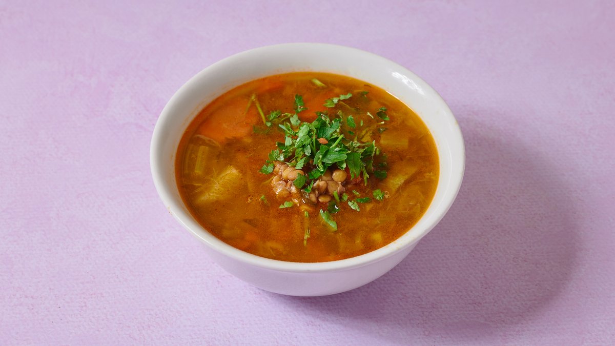 עדשים ירוקות, סלרי, עגבניות טריות, גזר, בצל ושום