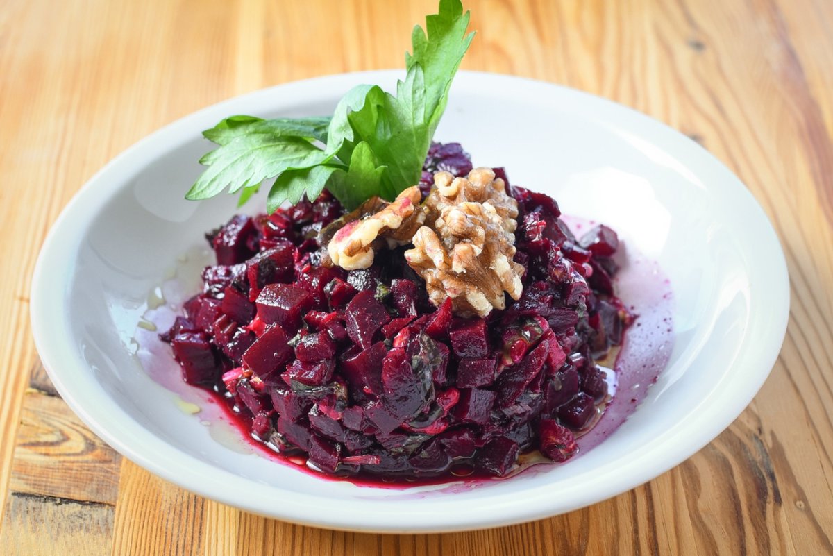 סלק מבושל, סלרי, אגוזים, בלסמי, לימון ושמן זית