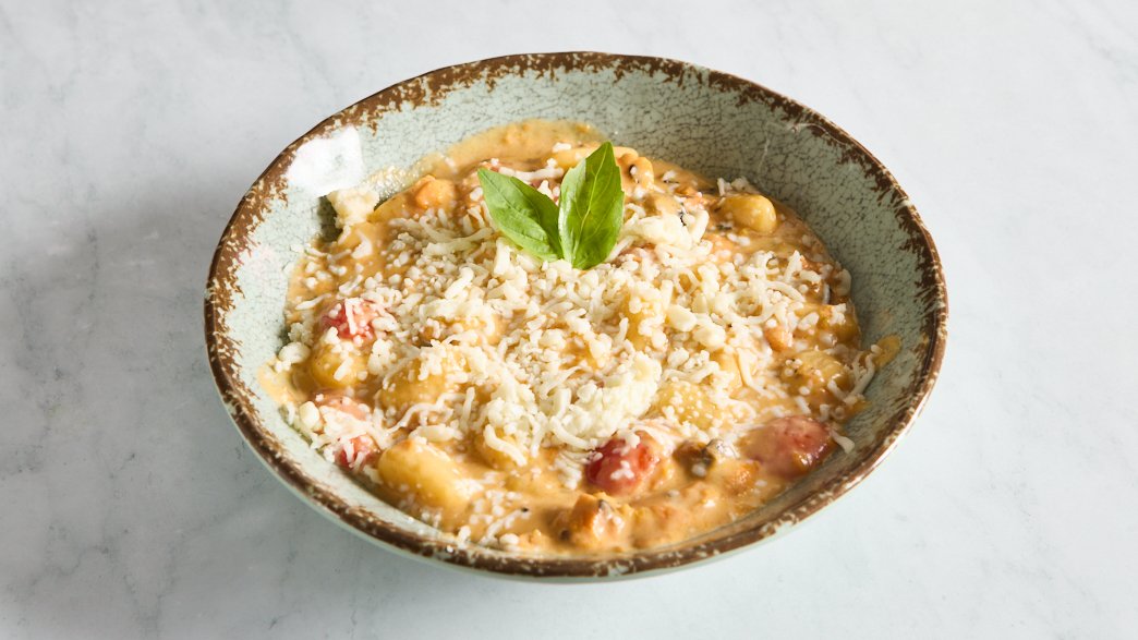 ניוקי תפוח אדמה בשלושה צבעים מוגש עם רוטב לבחירה