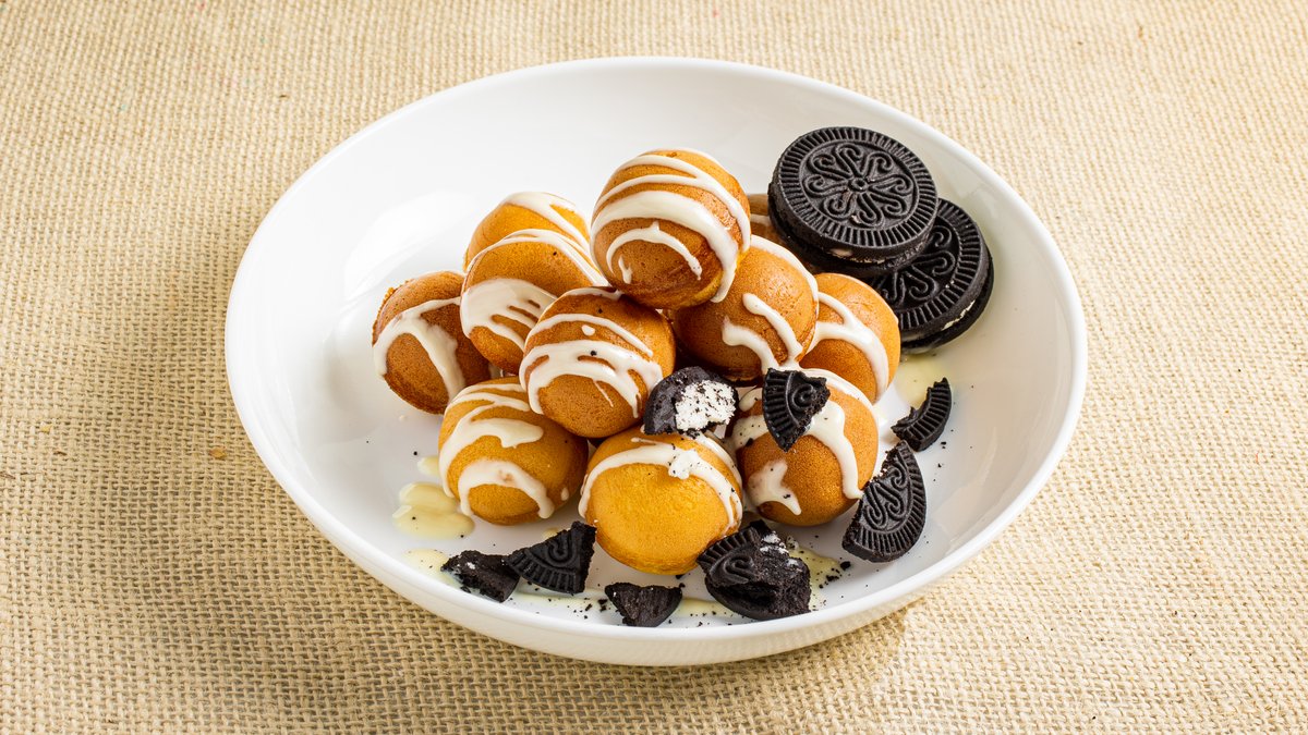 פנקייק, שוקולד לבן, שברי עוגיות אוריאו וכדור גלידת אוראו