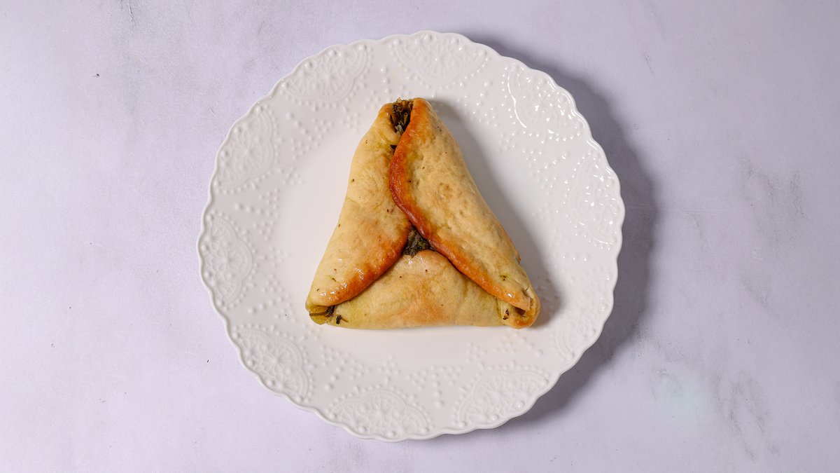 מאפה בצק רך ממולא בתרד מתובל בעדינות, אפוי עד זהוב עם טעם ביתי עשיר וממכר.
