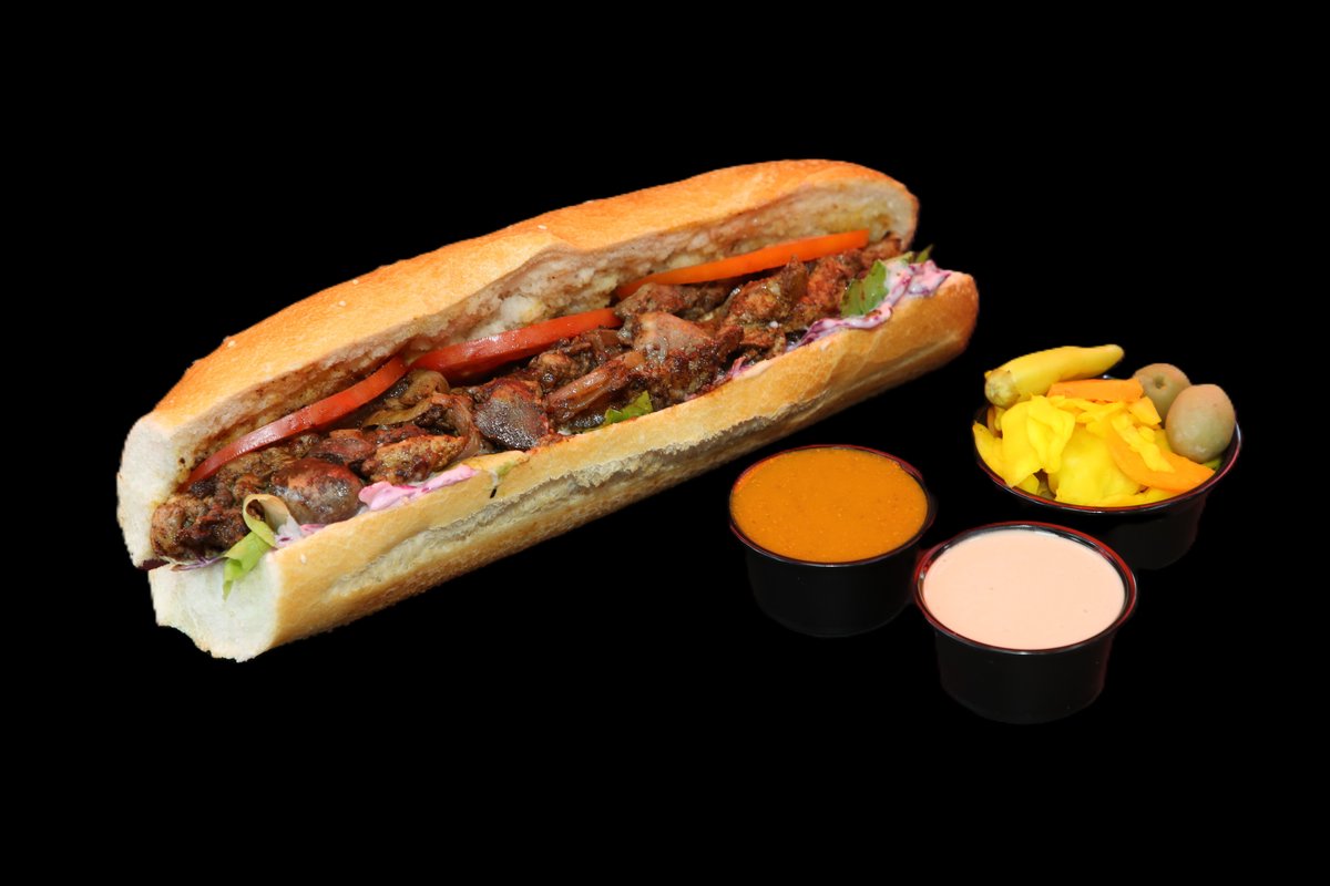 רצועות עוף, טחול עוף, לבבות עוף עם שומן כבש ובצל על הפלאנצ'ה בתיבול אסלי מוגש עם תוספת לבחירה