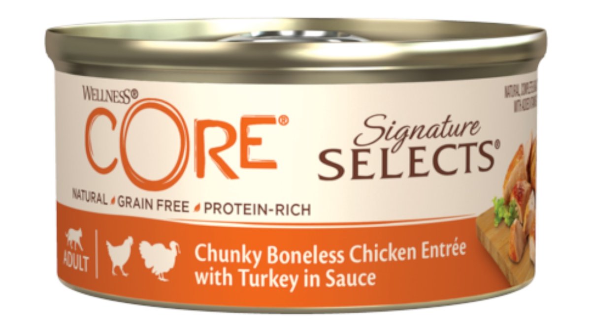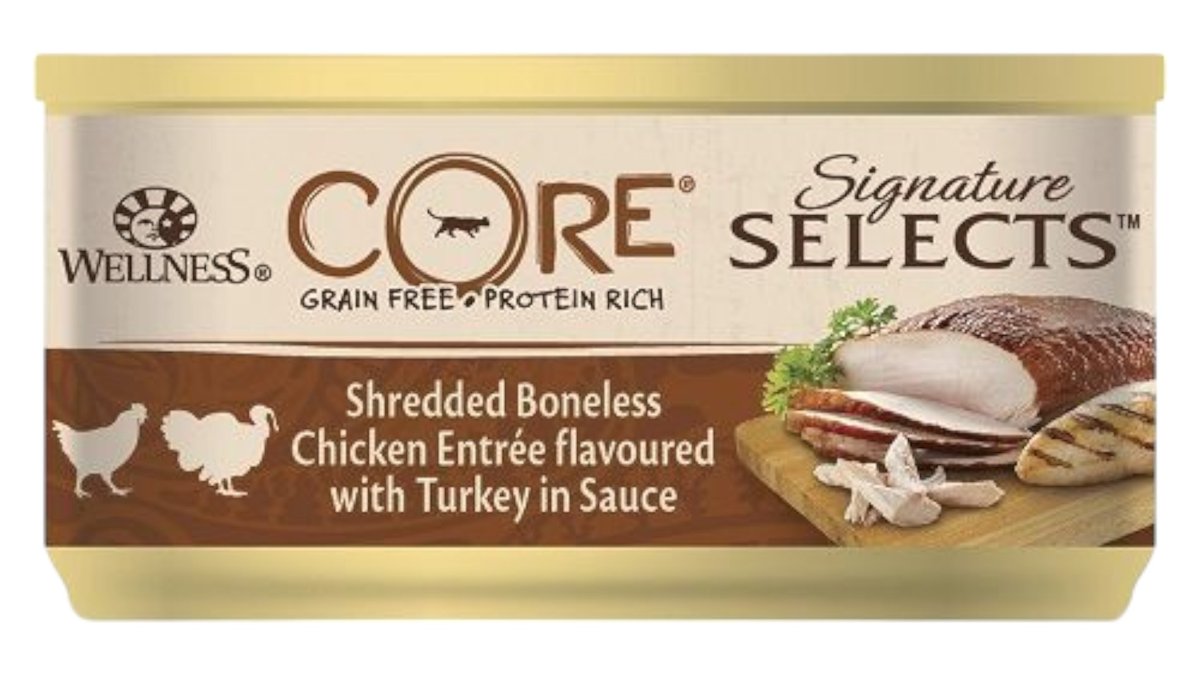 פאוץ' וולנס קור נתחי עוף וסלמון ברוטב לחתולים בוגרים 85 גרם Wellness CORE