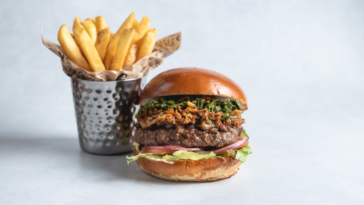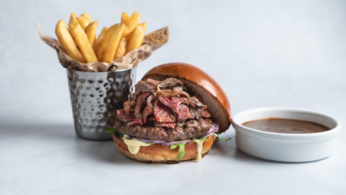 בשר טרי ואיכותי טחון במקום, מגיע במידת עשייה MW ומוגש בתוספת צ‘יפס