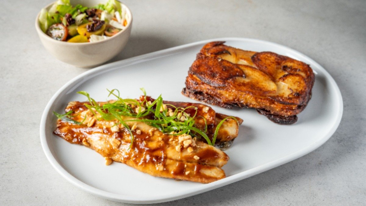 פילה דג לבן מושרה ברוטב מיסו וגרטן תפו"א מוגש עם סלט לבחירה