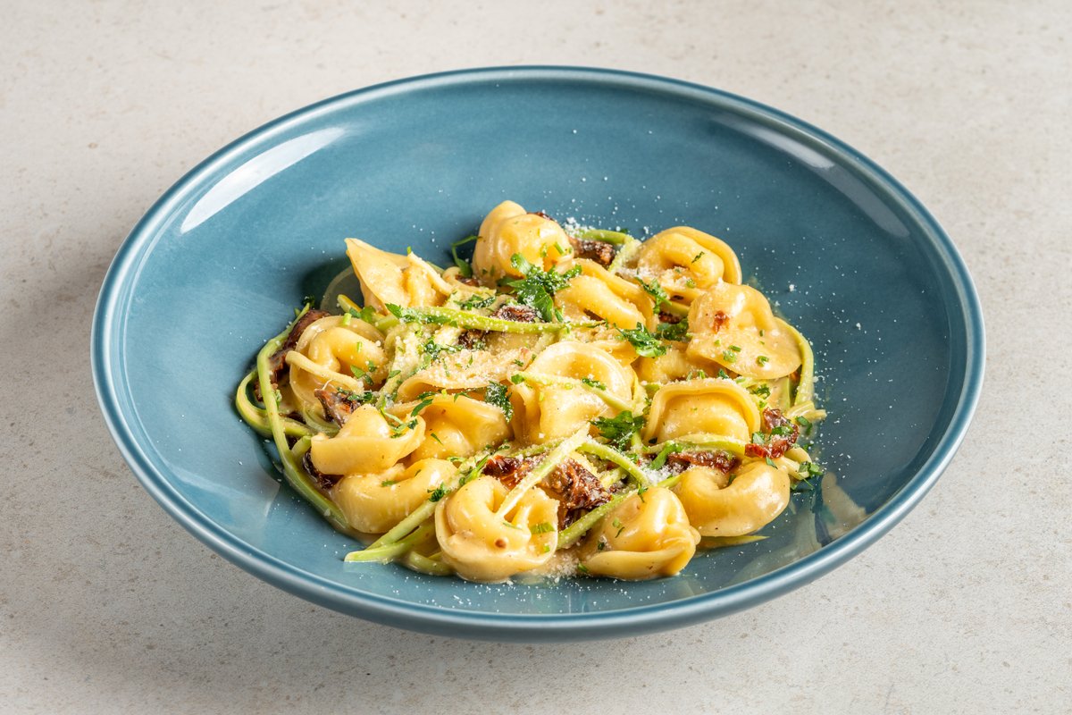 שמנת פסטו, שרי שמש, שום קונפי, זיתי קלמטה בלסמי מצומצם, בזיליקום וגבינת בוראטה