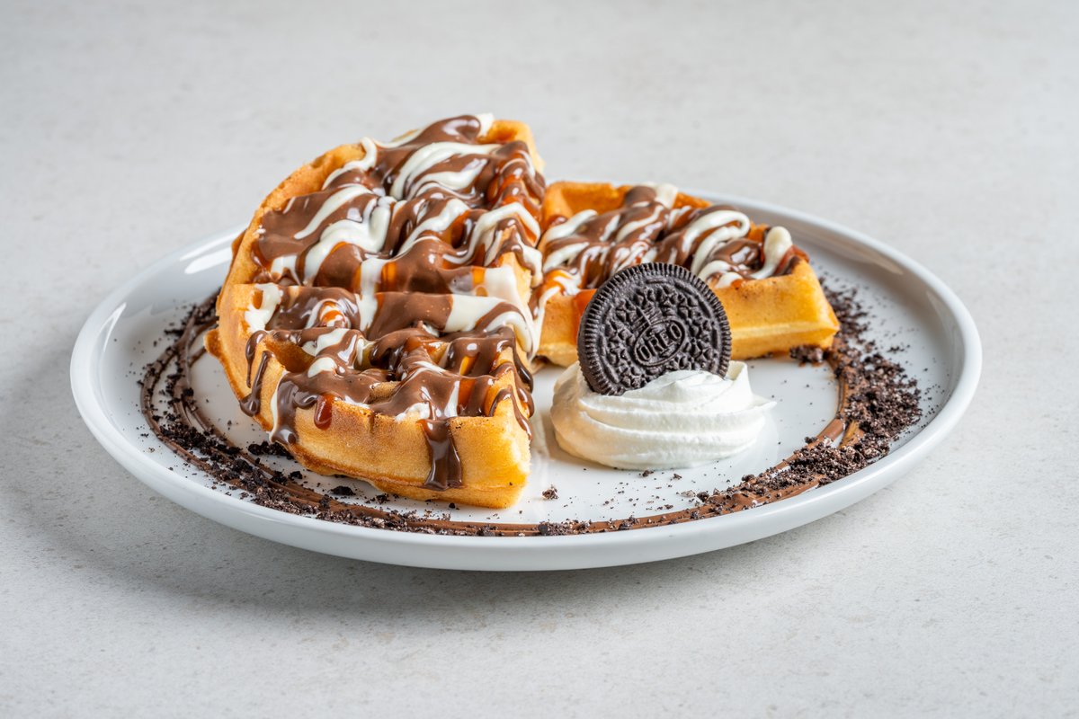 וופל אוראו שוקולד אגוזים, שוקולד לבן ועוגיות אוראו עם רטבים