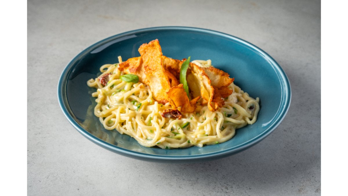 רוטב שמנת חמאה ולימון, פרמז'ן, זוקיני ופלפל שחור גרוס