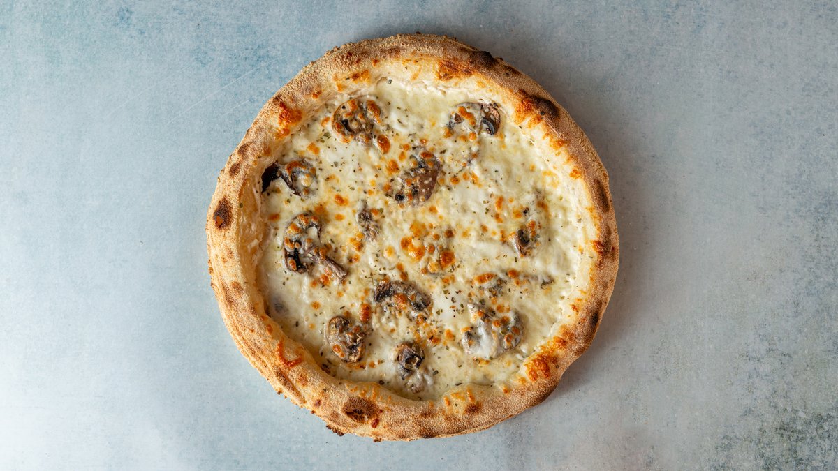 גבינת מוצרלה, רוטב אלפרדו, פטריות טריות ופסטו | בחרו גודל לפיצה