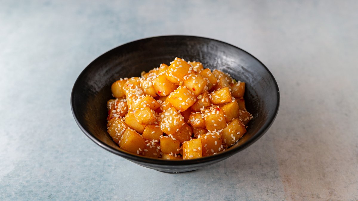 קוביות תפו״א מטוגנים עם רוטב צ'ילי