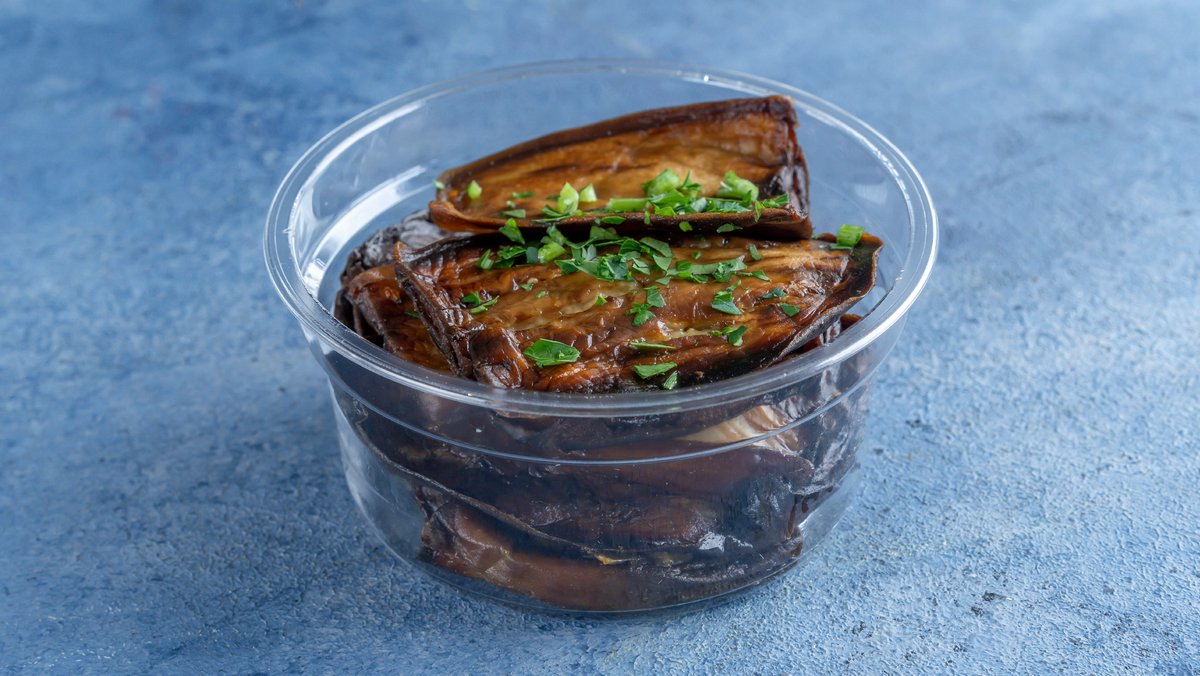 חציל, ביצה חומה ותפוח אדמה, עם סלטים לבחירה