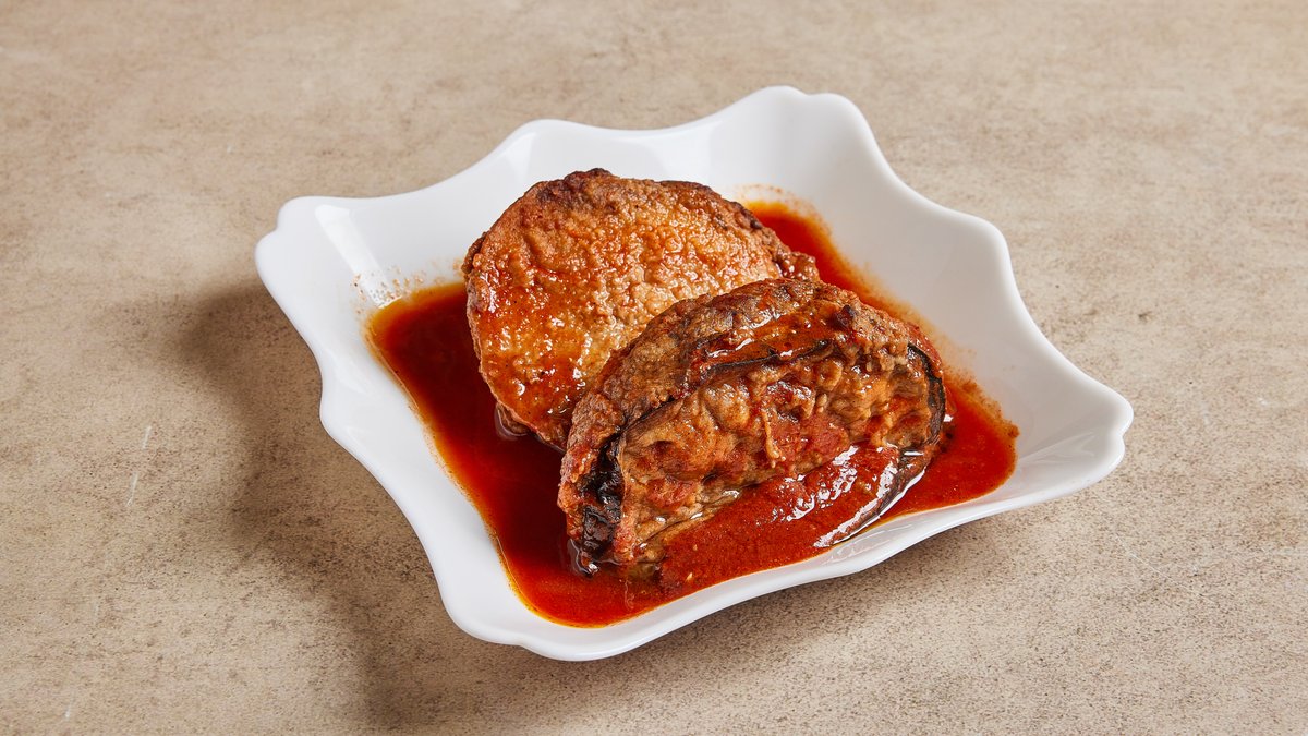 1 יח׳ פלחי חציל ממולאים בקציצת פרגית וירק