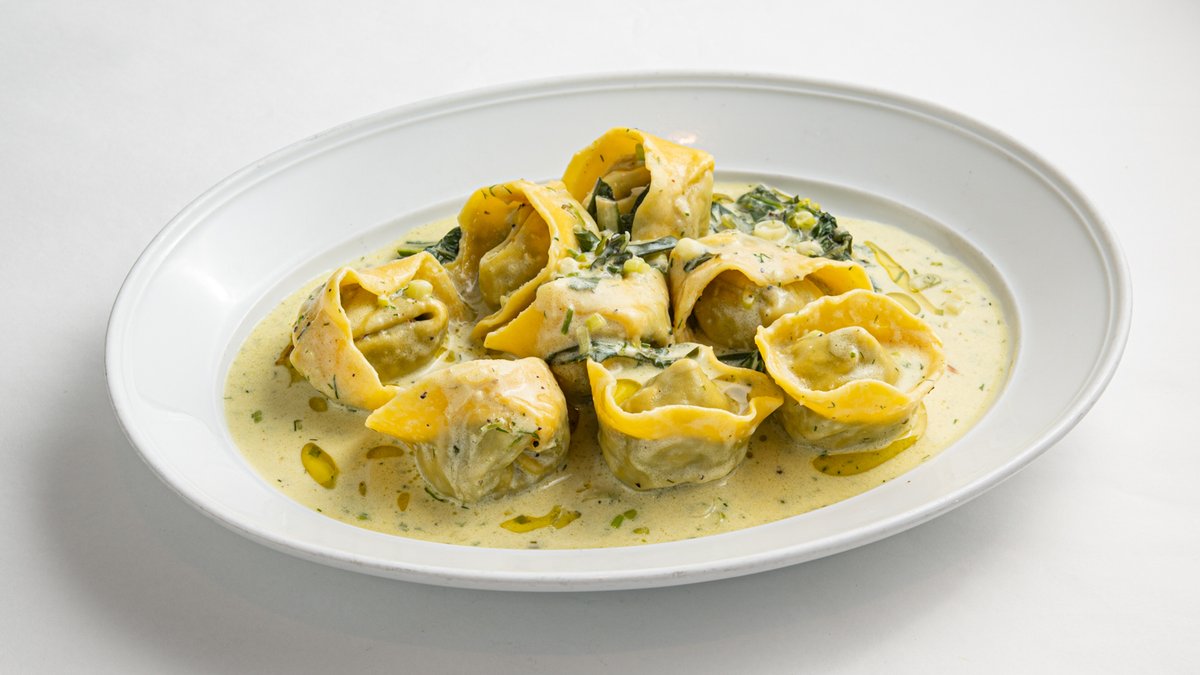 כיסוני פסטה מקורפו - מנגולד, שמיר ובצל ירוק ברוטב חמאת סטקה. צמחוני.