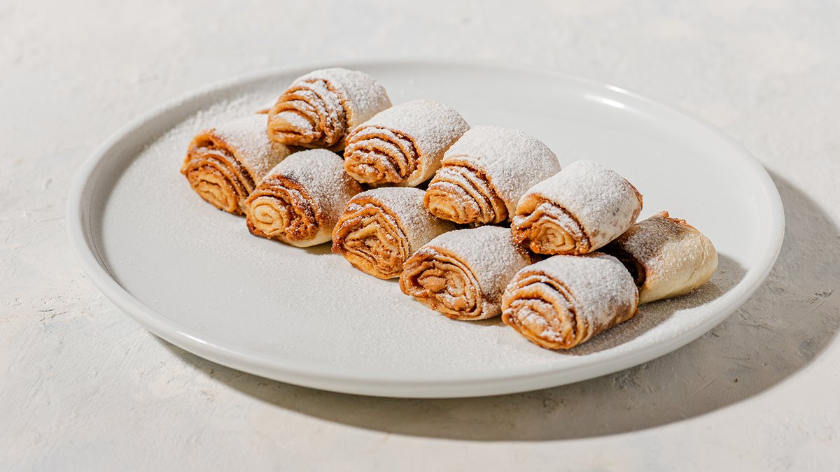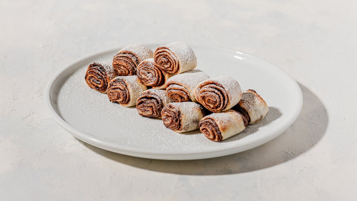 גלגולי מאפה בצק שמרים דקיק ופריך מלאים בקרם לוהט של שוקולד ואגוזי לוז / עוגיות קרמל