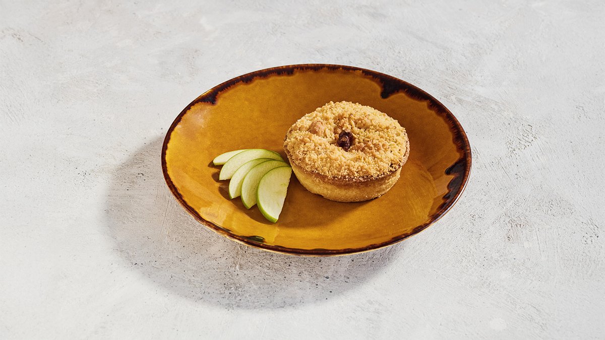 פאי של בצק שקדים פריך עם מלית עשירה וחמימה של תפוחי עץ בחמאה וקינמון