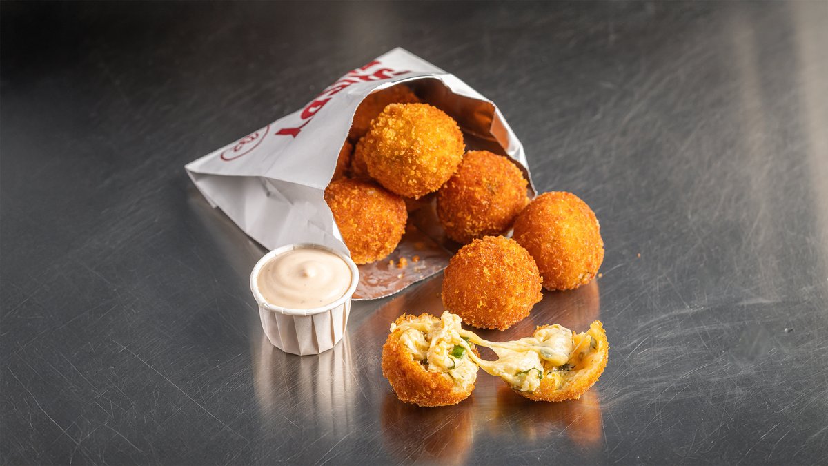 תערובת גבינות, בזיליקום, חלפניו, זרעי עגבנייה ובצל ירוק בציפוי פריך (6 יח')