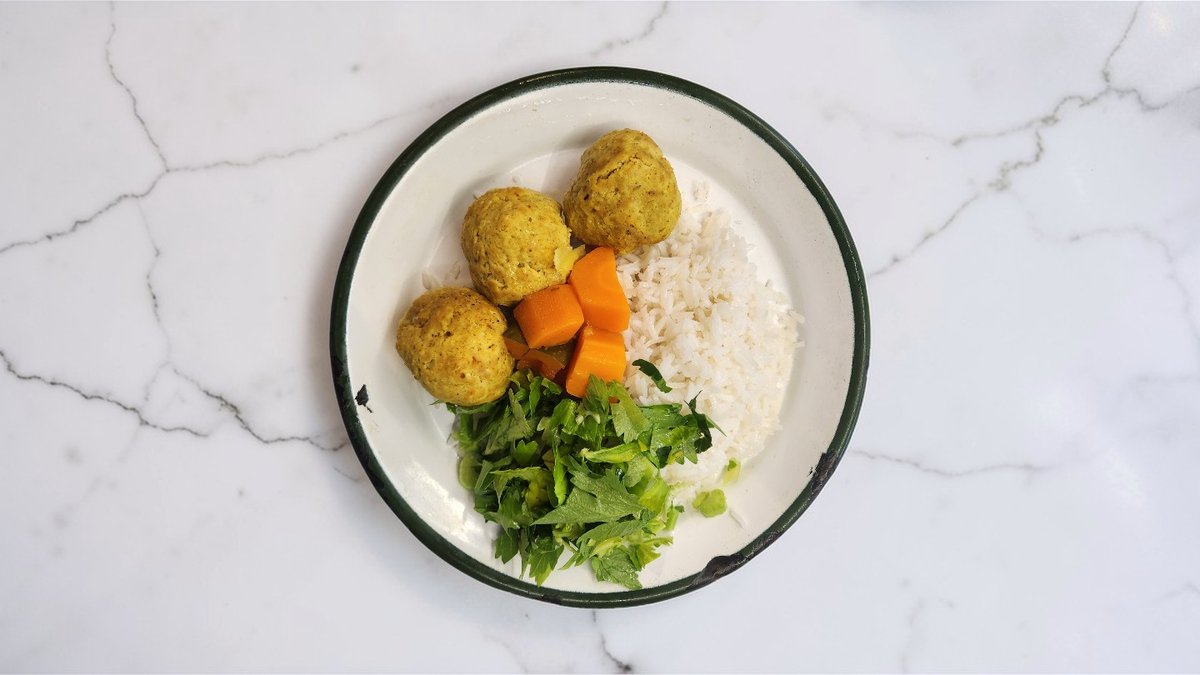 3 קציצות גונדי פרסיות, מוגש עם תוספת לבחירה