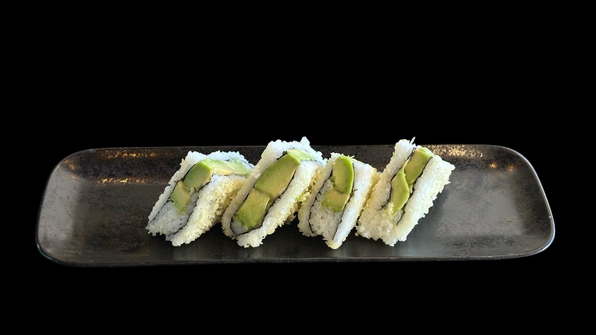 אבוקדו, מלפפון, פטריות שיטאקי ובצל ירוק בציפוי שומשום