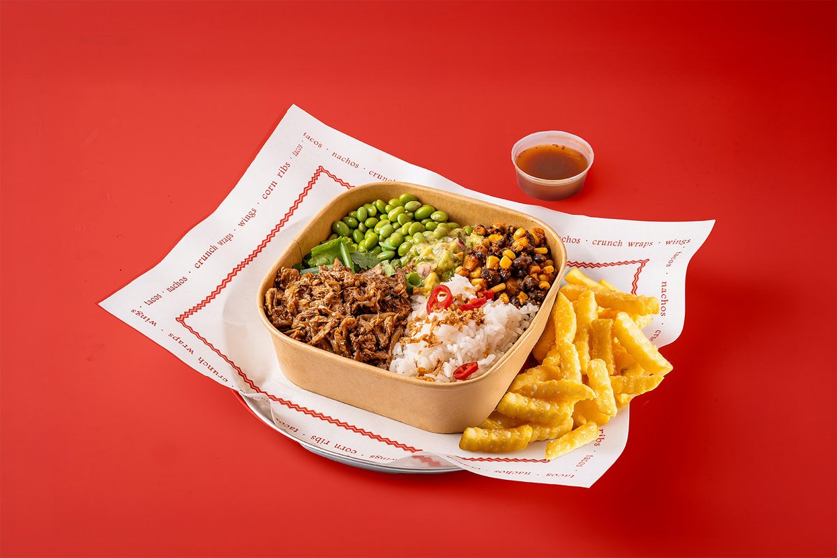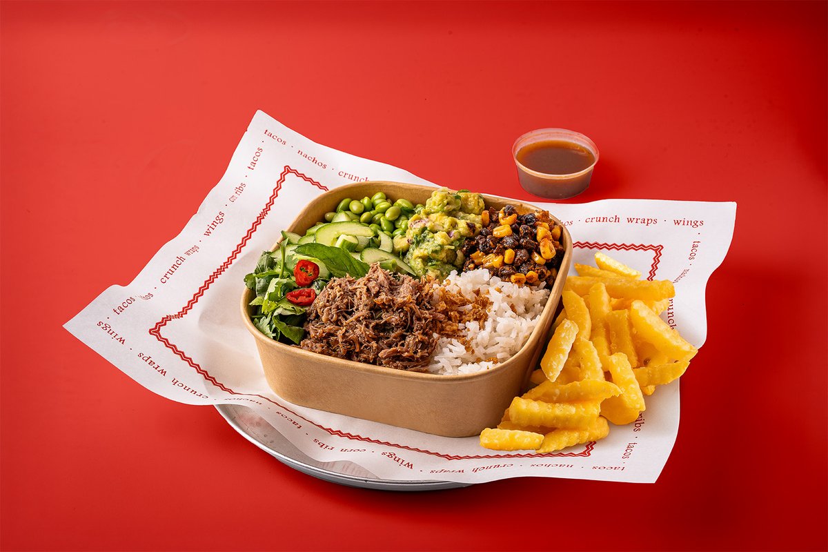 קערת רפידוס מפורק עם אורז, שעועית שחורה, תירס, קוביות אבוקדו, סלסת עגבניות, בצל מוחמץ וחסה. מוגש עם רוטב לבחירה בצד ותוספת מומלץ לא להסיר יותר מ-2 מרכיבים