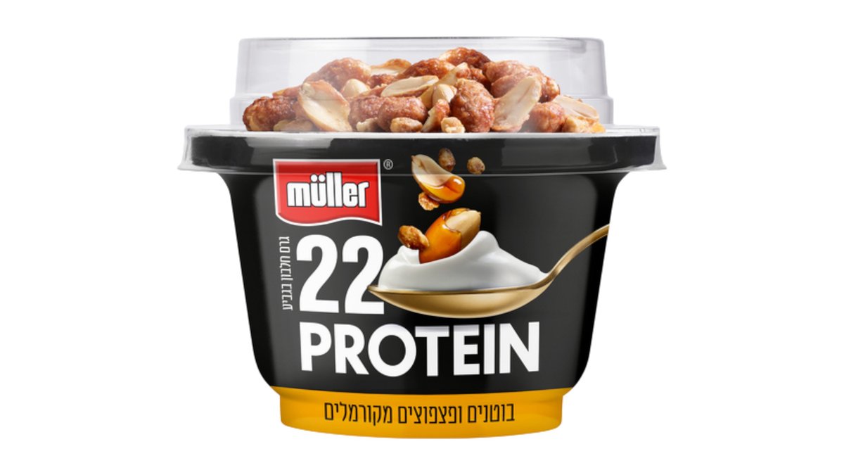 יוגורט מולר פרוטאין טופ בוטנים ופצפוצים מקורמלים