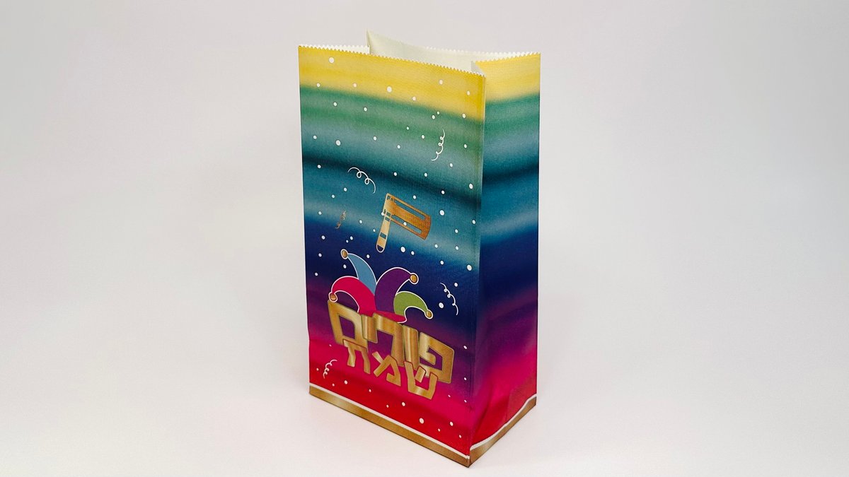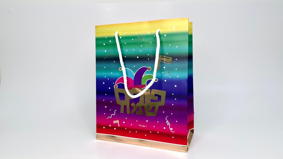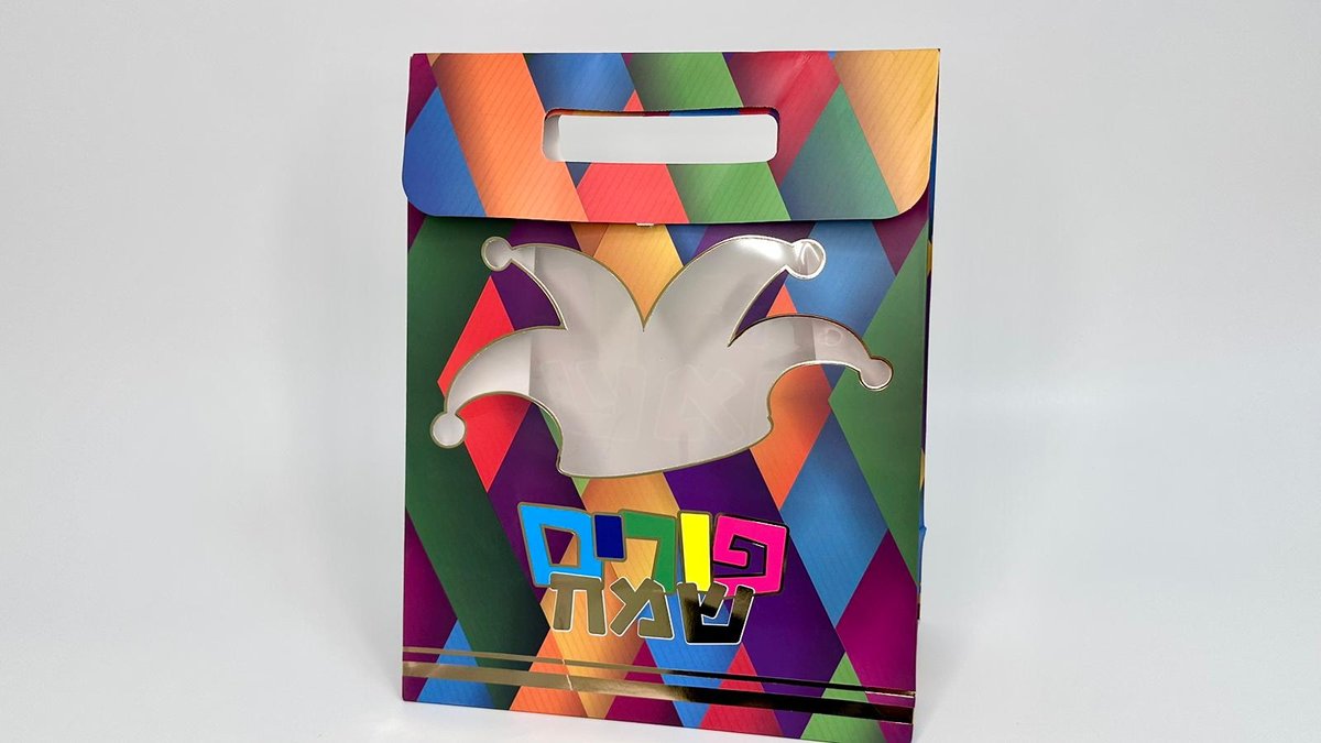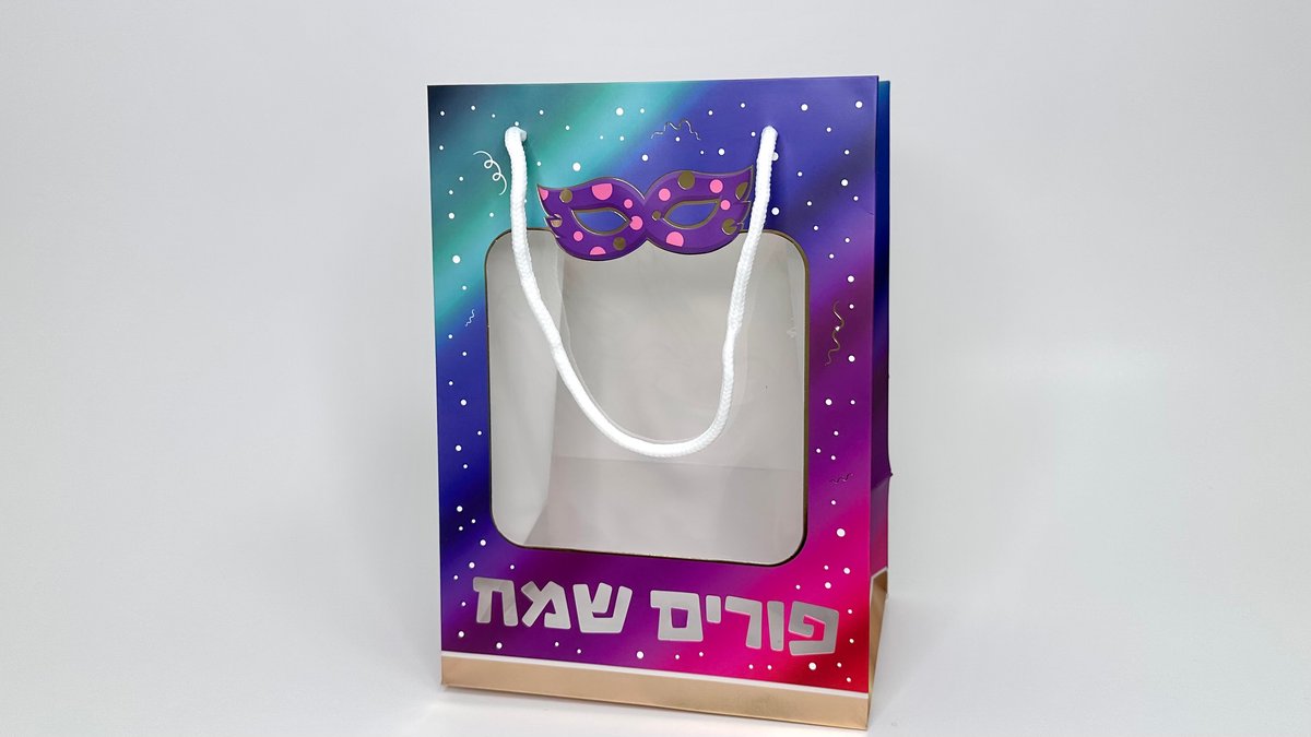 שקית קרטון פורים שמח עם חלון + ידית | יחידה אחת