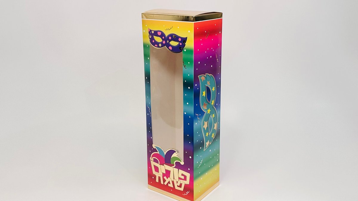 קופסת קרטון + מכסה פורים שמח | 15*15 ס״מ | יחידה אחת