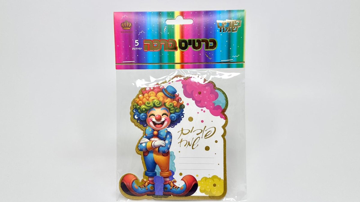 כרטיסי ברכה פורים שמח + ליצן | 5 יחידות