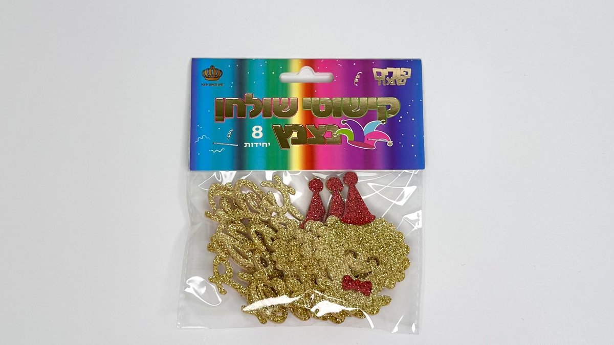קישוטי שולחן קטנים בצבע זהב נצנצים | ליצנים + פורים שמח | 8 יחידות