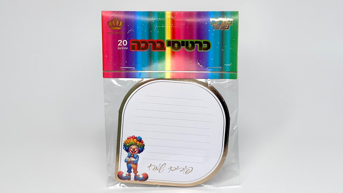 כרטיסי ברכה בינוניים פורים שמח + ליצן | 20 יחידות