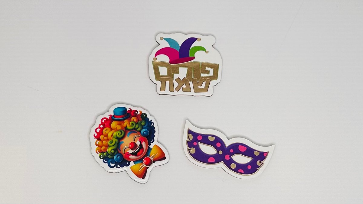 קישוט שולחן קטן מתקפל | ליצן + פורים שמח | 5 יחידות