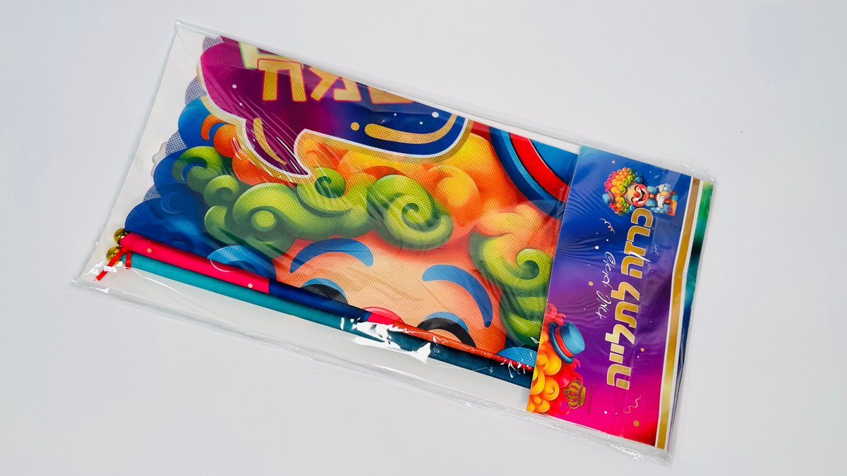 וילון פרנזים צבעוני לתלייה + שלט פורים שמח | 1*2 מטר | יחידה אחת