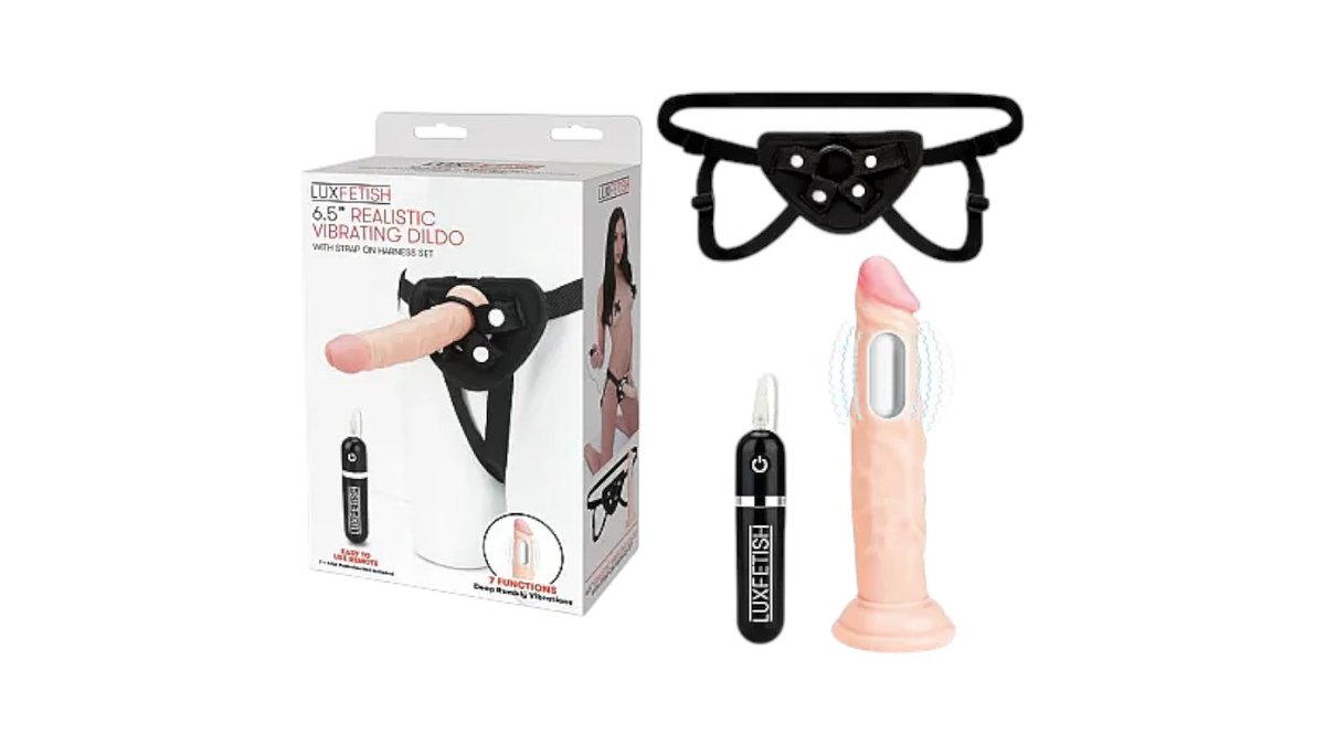 רצועת סטרפאון כולל דילדו איכותי LUXFETISHM רוטט עם שלט