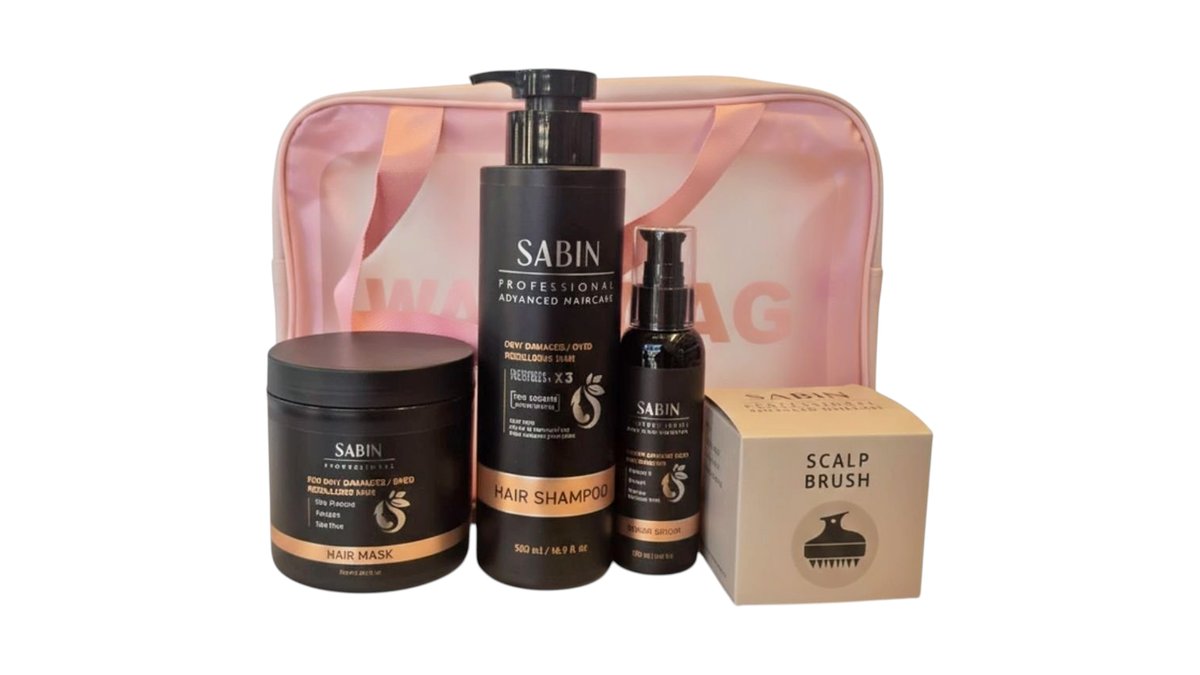 תיק ב3 צבעים לבחירה ו4 מוצרים סבין שמפו + מסכה + סרום + מברשת עיסוי