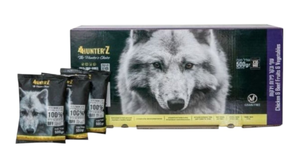 פור האנטרז 4Hunterz מזון מלא טבעי לכלבים עוף בקר ירקות ופירות 6 ק״ג