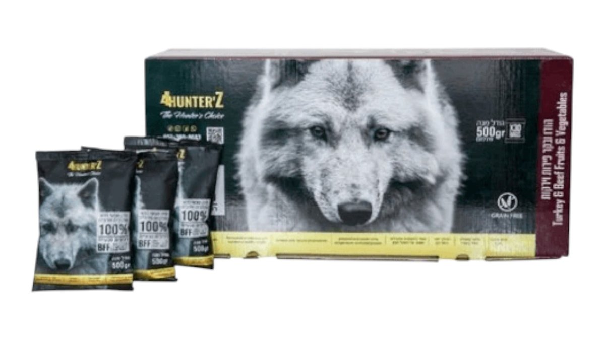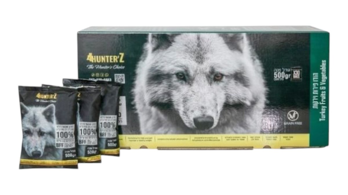 פור האנטרז 4Hunterz מזון מלא טבעי לכלבים הודו בקר ירקות ופירות 6 ק״ג