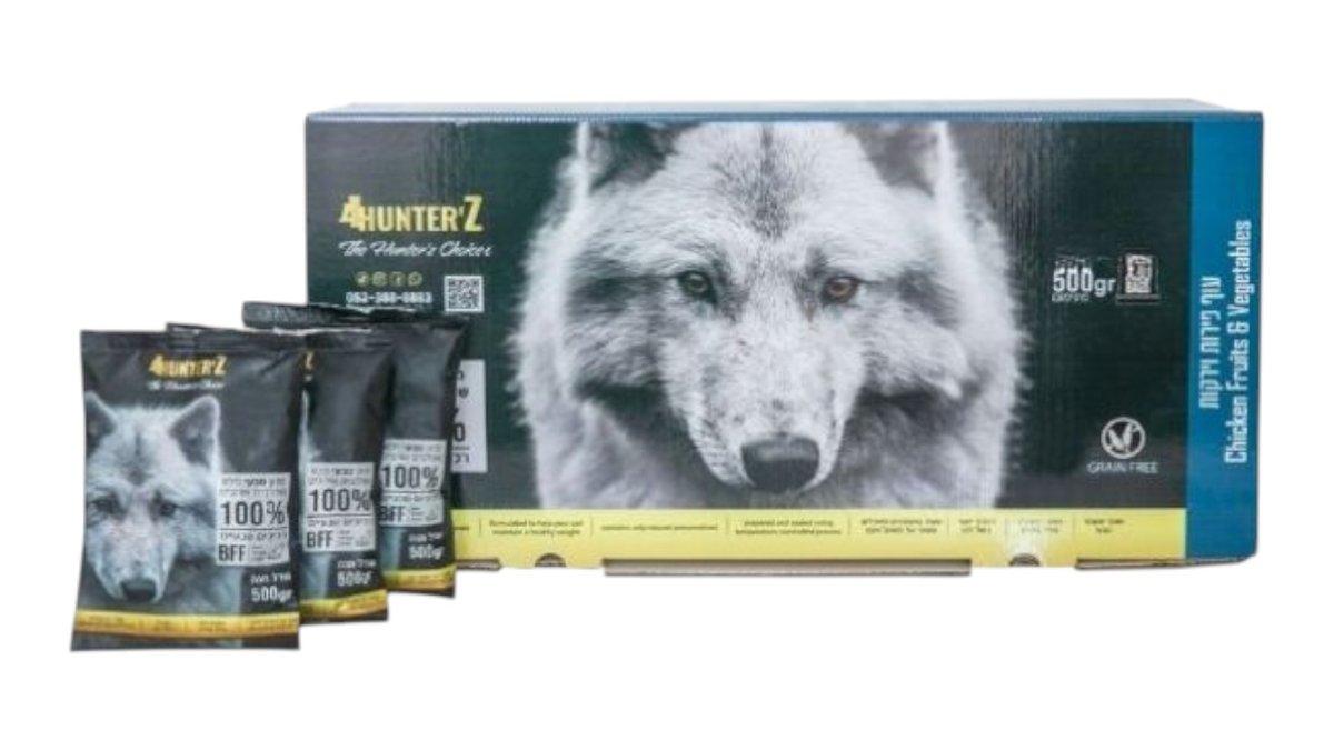 פור האנטרז 4Hunterz מזון מלא טבעי לכלבים עוף סלמון ירקות ופירות 6 ק״ג