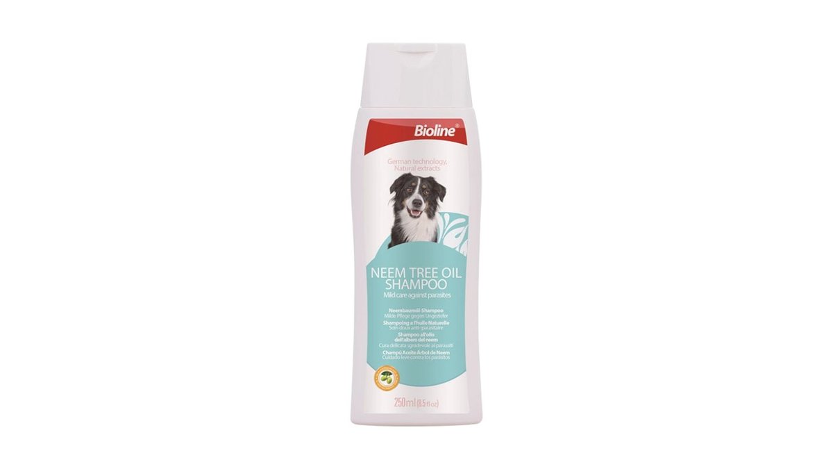 ביוליין Bioline שמפו שמן עץ הנים דוחה פרעושים לכלבים 250 מ"ל
