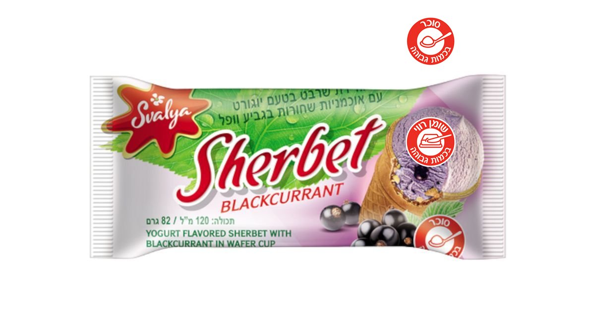 גלידת שרבט בטעם יוגורט עם אוכמניות שחורות בגביע פלומביר