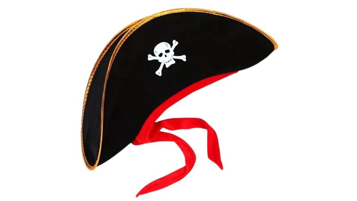 כובע פיראט למבוגרים שחור קטיפה עם סמל פיראטים