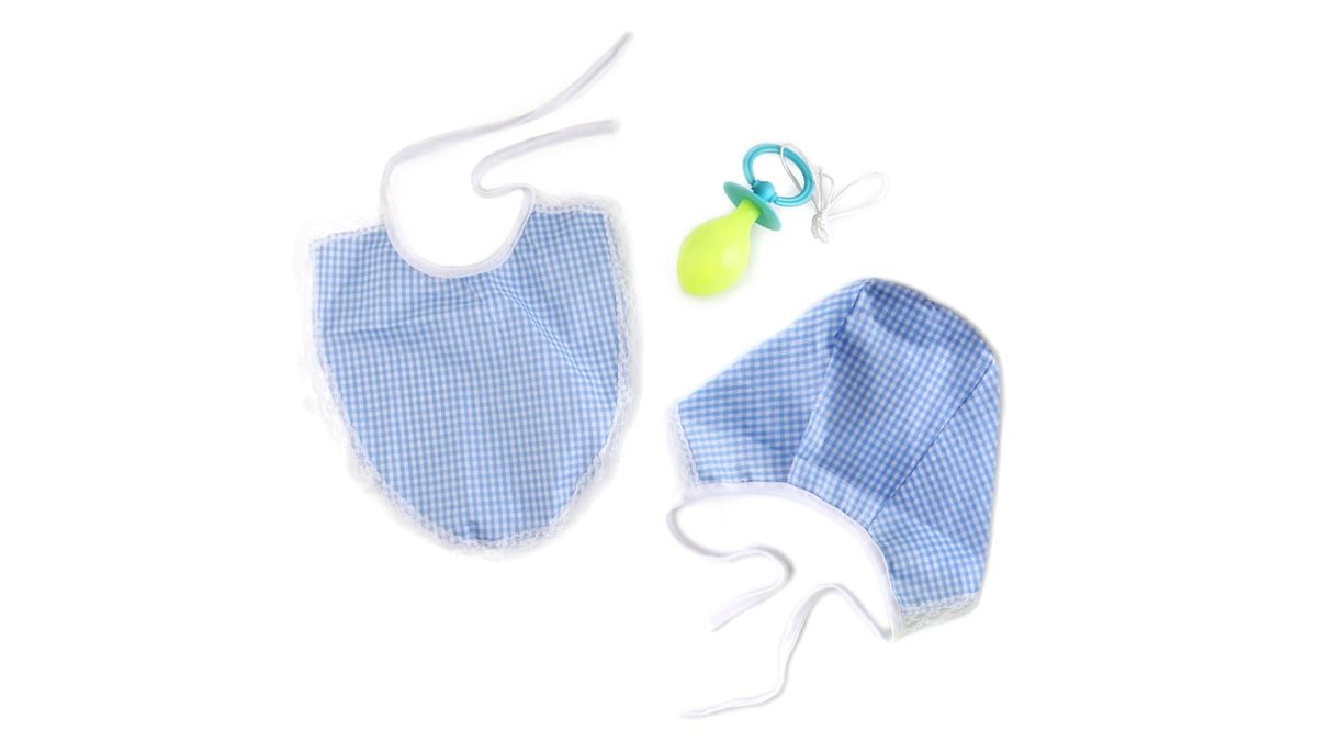 סט כובע, סינר ומוצץ ענק עם צפצפה פנימית וחוט תליה (מגוון צבעים)