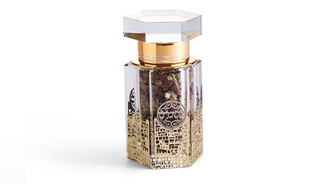 כלי לבשמים מקריסטל עם פלקטה "ירושלים" 8.55 ס"מ עם ציפורן