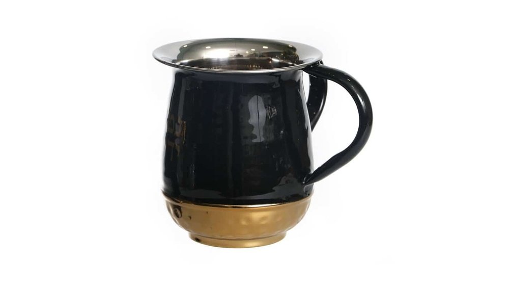 נטלה נירו’ אמייל שחור “נטילת ידיים” זהב ועיטור רקוע