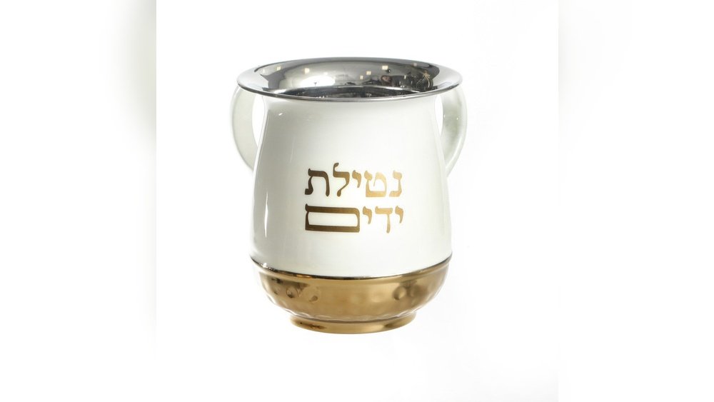 נטלה נירו’ אמייל לבן “נטילת ידיים” זהב ועיטור רקוע