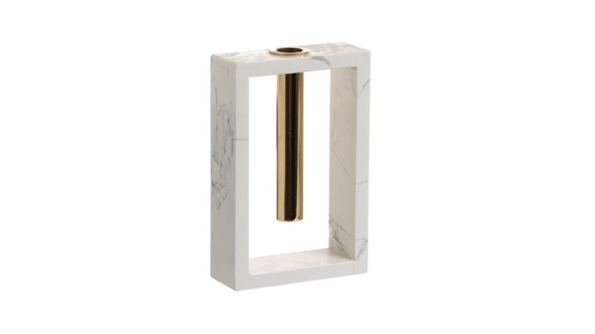 אגרטל מתכת זהב במסגרת שיש | לבן שיש