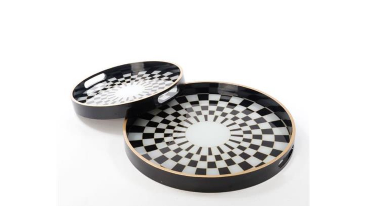 זוג מגשים עגולים Life Style 4P – בעיצוב יוקרתי | לבן גיאומטרי