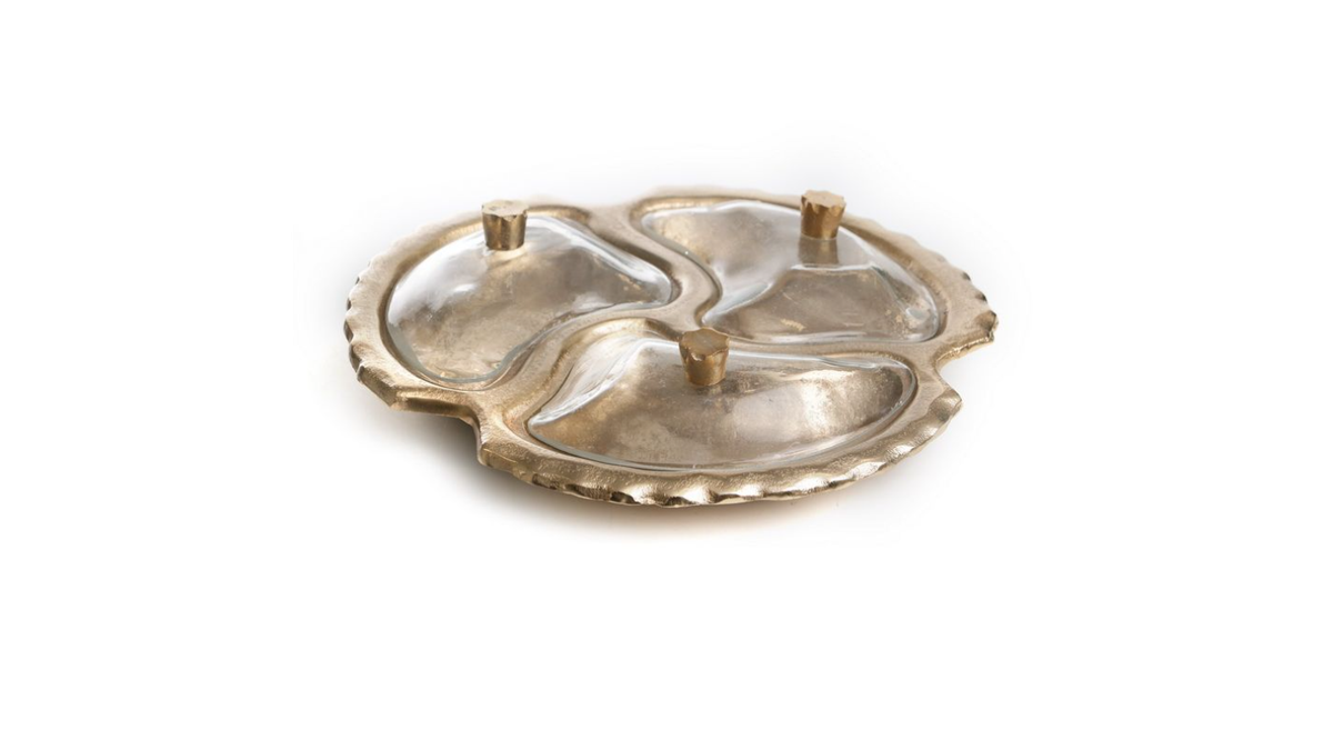 מגש עגול מתכת זהב מחולק ל3