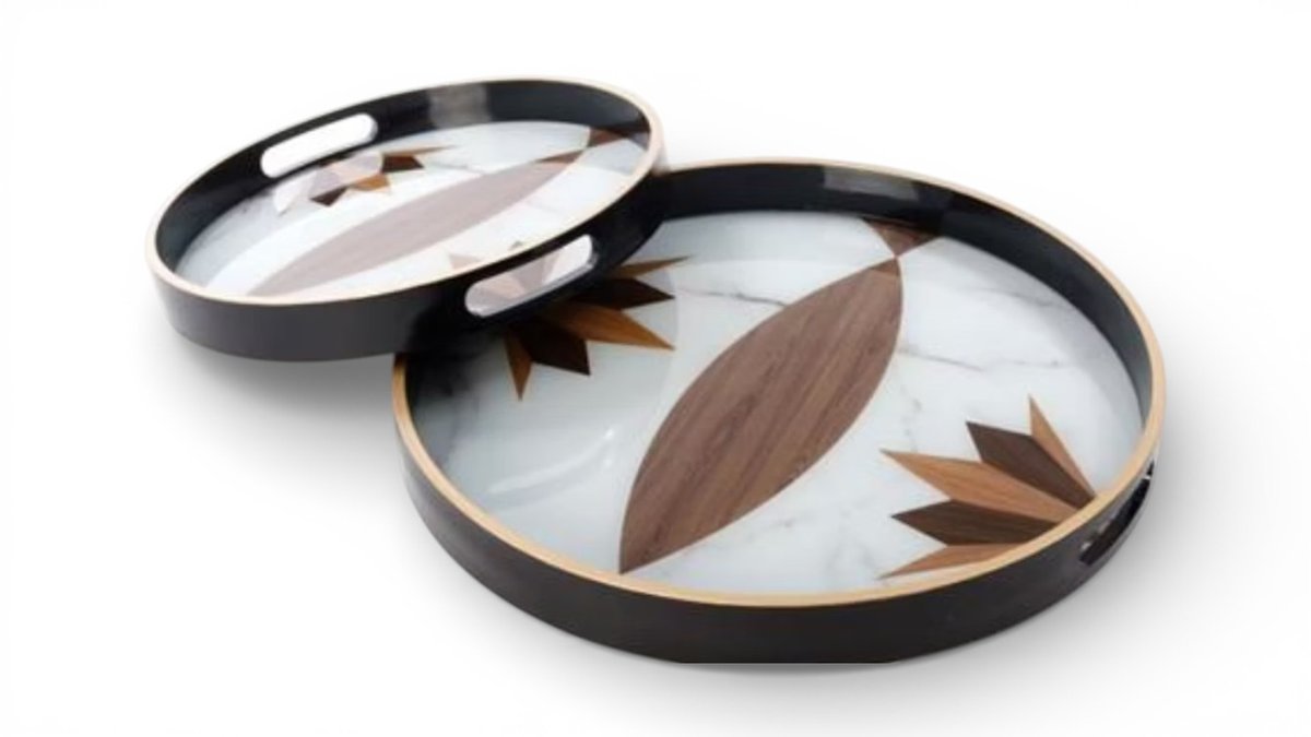 זוג מגשים עגולים Life Style 4P – בעיצוב יוקרתי | עץ שיש טבעי