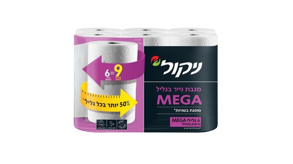 מגבות נייר סופג מגה ניקול - 50% יותר
