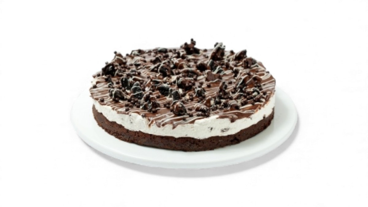 תחתית של בראוניס קרם אוראו בציפוי רוטב שוקולד ועוגיות